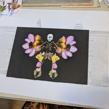 In this workshop we covered marbles in ink and then rolled them on our blank pages or artwork to see what effects they created.
