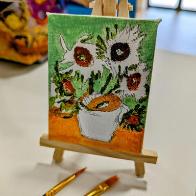 These Van Gogh inspired mini canvas paintings using acrylic are still being worked on. We can't wait to see how they turn out.